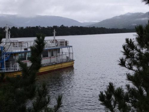 旅館の部屋から観光船が見えます。