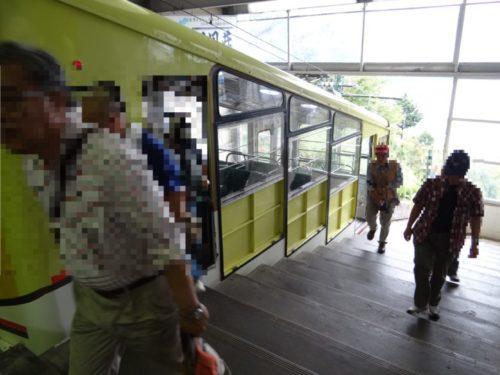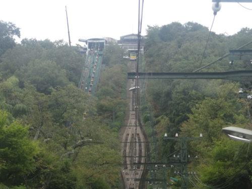 隣をケーブルカーが行きます。