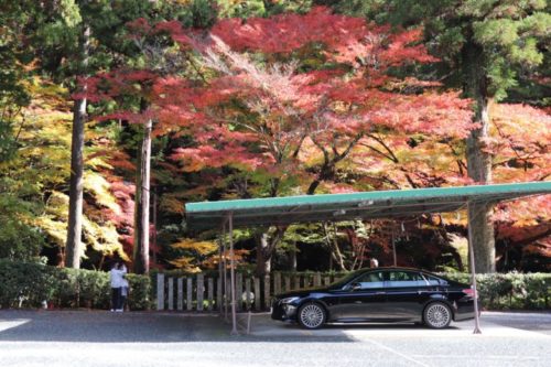 車のお祓いを受ける駐車場近くが紅葉の真っ盛りでした。