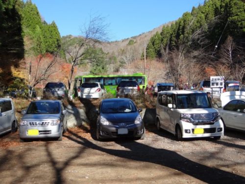 今回のハイキングは、石割神社駐車場からスタートします。広々とした駐車場ですが、人気のコースのため、休日には多くの車で賑わいます。