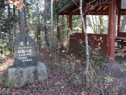 石段を登り終えると、登山道は一転してなだらかな道に変わります。途中には避難小屋があり、休憩に利用することも可能です。