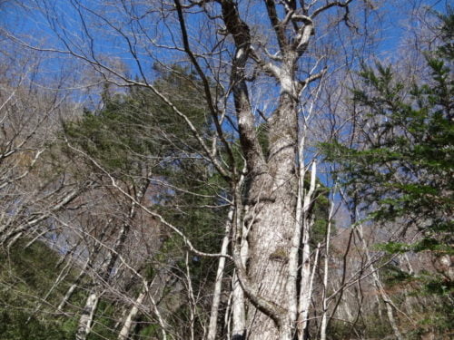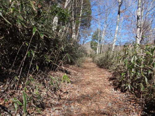 落ち葉が敷き詰められた登山道は、歩くたびに心地よい音が響き、森林浴を楽しみながら進めます。