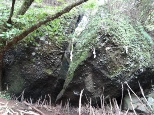 奥の院を通り過ぎて急登を登った所に宿り石があります。金太郎とその母山姥がここで暮らしたとされています。