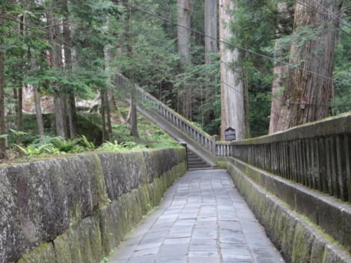 左甚五郎作の眠り猫見て、東照宮本殿の裏側の石畳を奥宮に向かいます