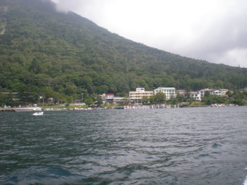 浜松から東名高速道路、(首都高速圏央道は無かった頃)、東北自動車道を乗り継ぎ、いろは坂をうねうねと登って中禅寺湖にたどり着きました。(食事トイレ休憩込みで約6時間半)
