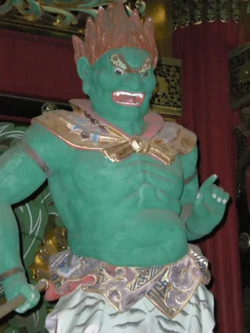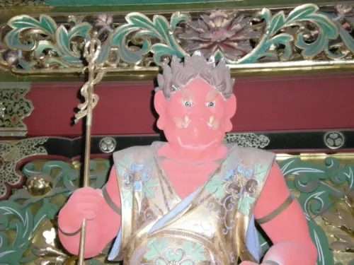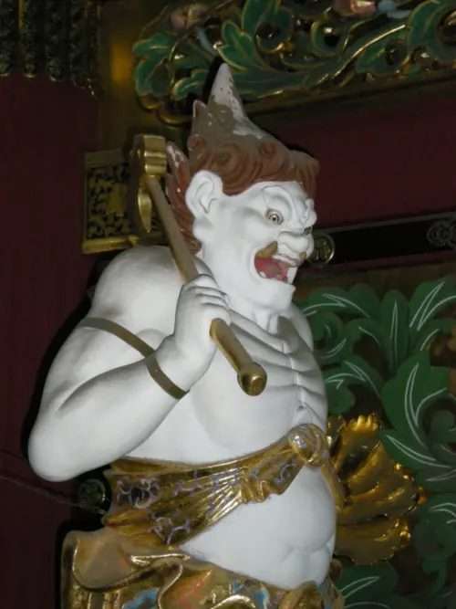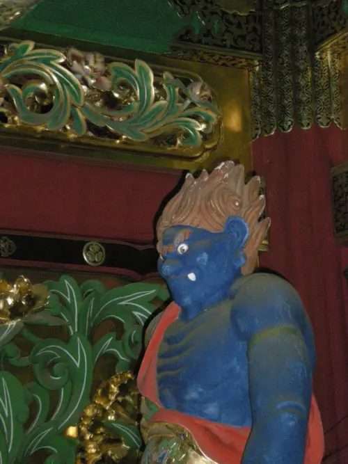 そして、夜叉門には4体の夜叉が家光の霊廟を守っています。四夜叉は、阿跋摩羅(あばつまら)、毘陀羅(びだら)、烏摩勒伽(うまろきゃ)、犍陀羅(けんだら)です。烏摩勒伽が手にする金の弓矢は破魔矢であり、輪王寺大猷院にて龍神破魔矢として、授与していただきました。