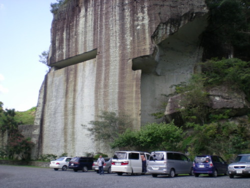 大谷石は柔らかく加工がしやすく昔から外壁や土蔵石塀や門柱などの色々な建築物に使われて来ました。ここ大谷町付近の採石場は規模が大きく、地下数十メートルから100mを超える所もあるようです。最盛期には120ヶ所の採石場が稼働していたそうです。操業を終えた採石場の広い地下空間は、ワインやその他食品などの貯蔵熟成に使われたり、映画撮影、演奏会、展示会などに利用されています。