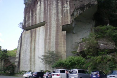 大谷石は柔らかく加工がしやすく昔から外壁や土蔵石塀や門柱などの色々な建築物に使われて来ました。ここ大谷町付近の採石場は規模が大きく、地下数十メートルから100mを超える所もあるようです。最盛期には120ヶ所の採石場が稼働していたそうです。操業を終えた採石場の広い地下空間は、ワインやその他食品などの貯蔵熟成に使われたり、映画撮影、演奏会、展示会などに利用されています。