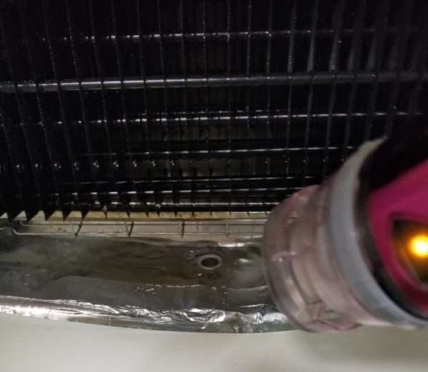 これが一番時間が掛かりましたが、完全に中の氷を溶かし、パイプの通りを確認します。ゴミやホコリがあり、つまった状態では再発します。