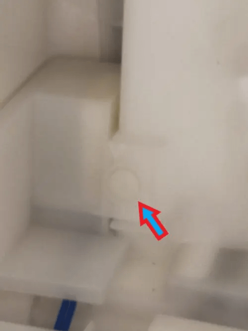 ドレンが通ったならば、分解と逆に組み立てるだけです。製氷機を取り付けるのに少し手間取りましたが、両手で少し強めに上に押しながら左にスライドさせ収まりました。