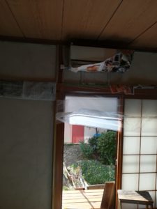 ふすまや柱等も全て養生します。床も、もちろんシートを敷いておきます。