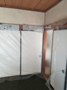 コンセントやスイッチ等も外しておきます。コードの端は絶縁の為テープを巻いておきました。(外せるものはすべて外しておきます)