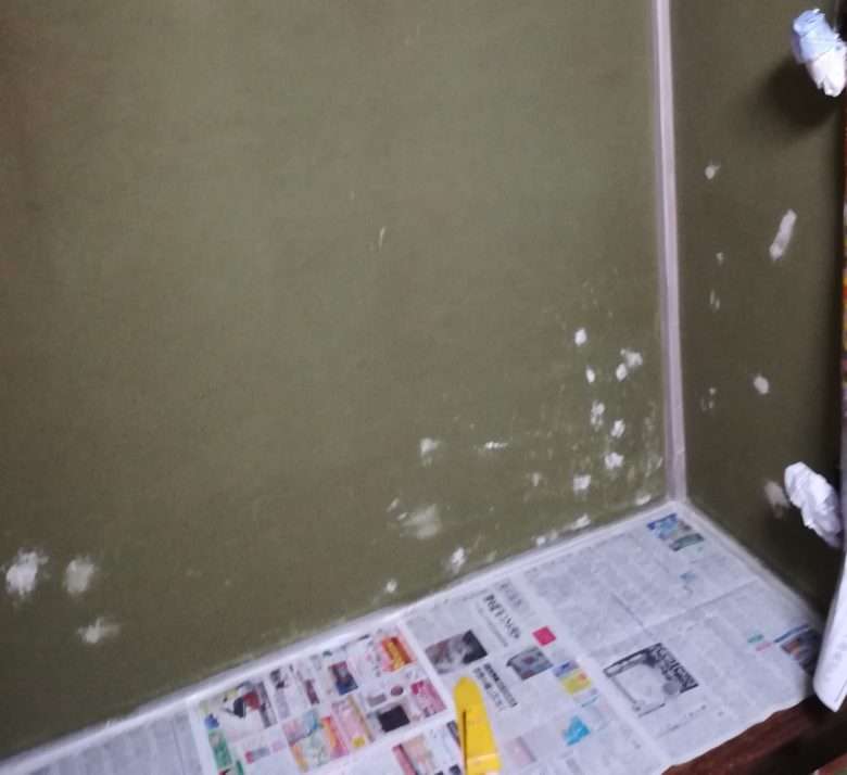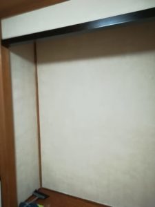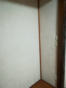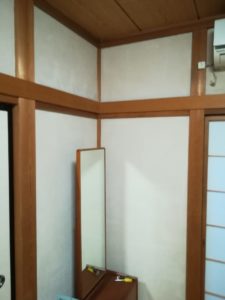 下地は聚楽壁でしたが、そのままにして、キズやひび割れを、パテやひび割れ補修テープを使い補修して、上塗りしました。