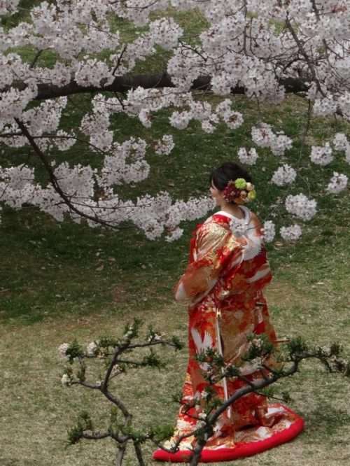 桜も満開です。花嫁さんの撮影もおこなわれていました。