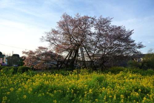 井出館は源頼朝が、狩の際に本陣を置いたとされています。富士山と桜と菜の花畑が素晴らしくマッチしたロケーションでしす。