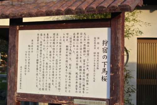 「 狩宿の下馬桜 」は別名「 駒止めの桜 」と呼ばれ、源頼朝が巻狩り際に、この地狩宿で桜の枝に馬を止めたと伝えられているとあります。