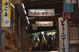 最初のアプローチはお土産屋さんのアーケードでした。木彫りのお面などもあり、帰りにゆっくり見たいと思いました。