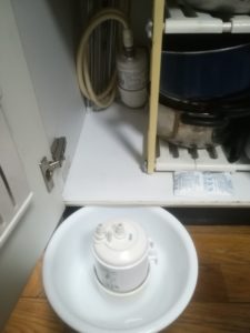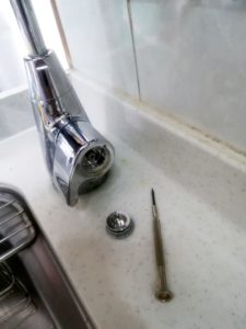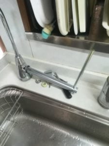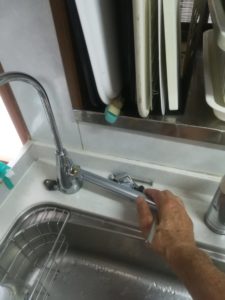 まずは、シンクの下の元栓を閉めてから作業開始です。