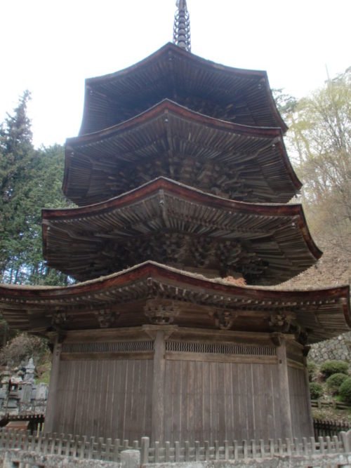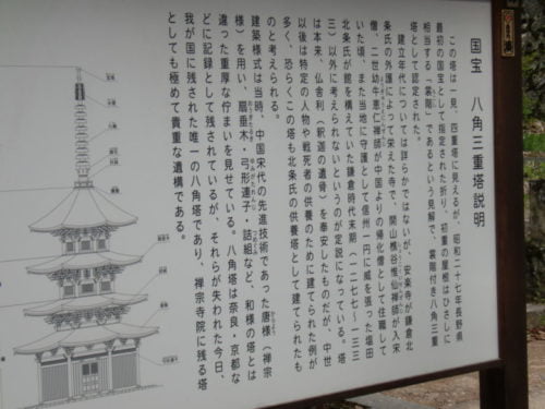 本堂の裏を登って行くと、国宝の八角三重塔があります